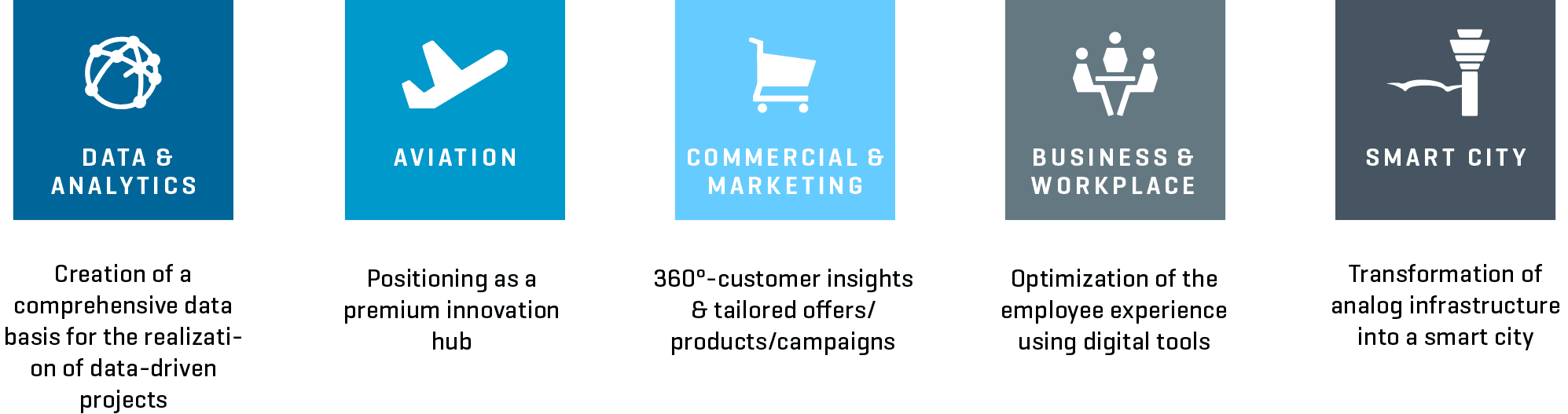 The digital transformation is a very important strategic issue for Munich Airport, which must be actively shaped in the coming years. The main themes of the updated digital strategy comprise the following: